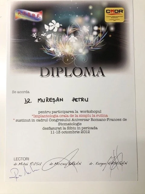 Tratament multidisciplinar (implanturi, protetică, parodontologie).